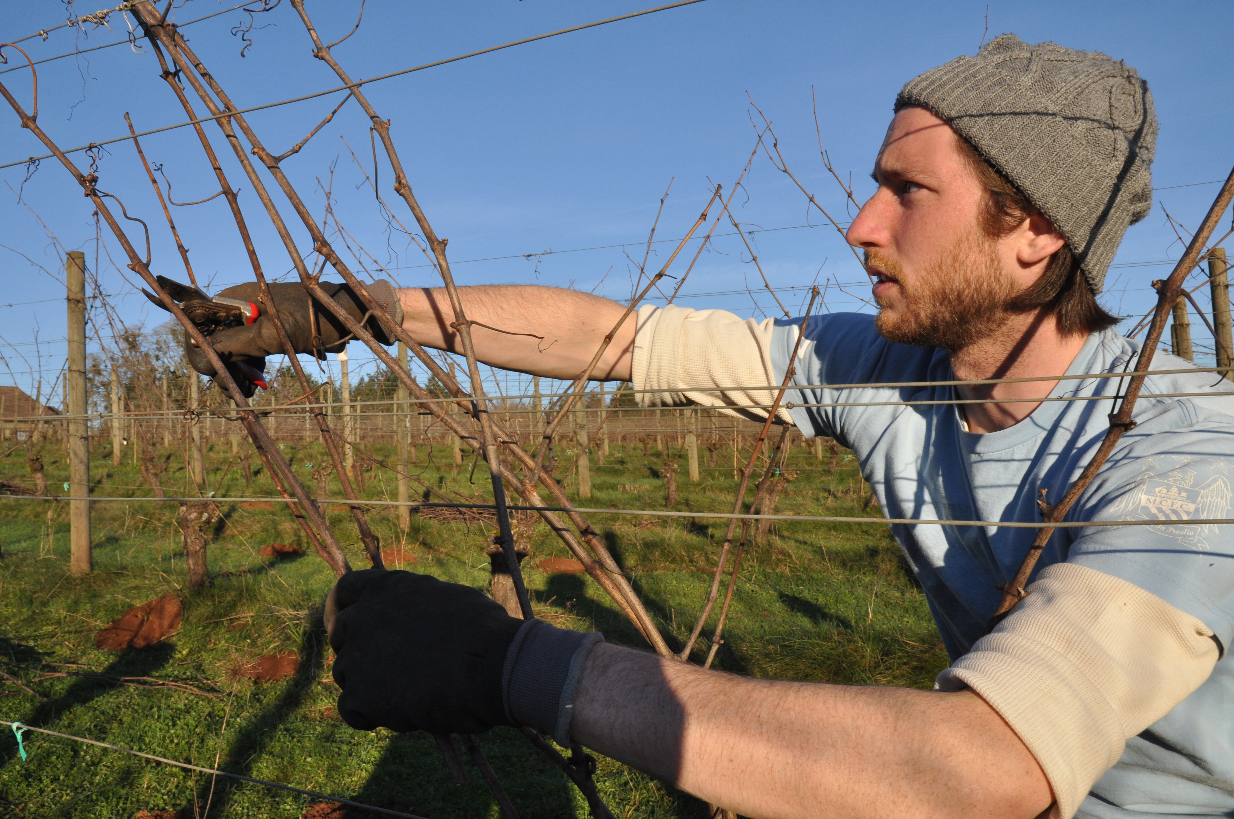 From John, February 3rd, 2012Dan pruning Clos Electrique vines